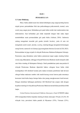 APRILLOVY, BUNGA (2024) Hubungan Pemberian ASI Eksklusif dan Asupan Zink dengan Kejadian Stunting pada Balita Usia 6 - 59 Bulan di Pos 4 Posyandu Desa Damarsi Kecamatan Buduran Kabupaten Sidoarjo. Other thesis, STIKES HANG TUAH SURABAYA.